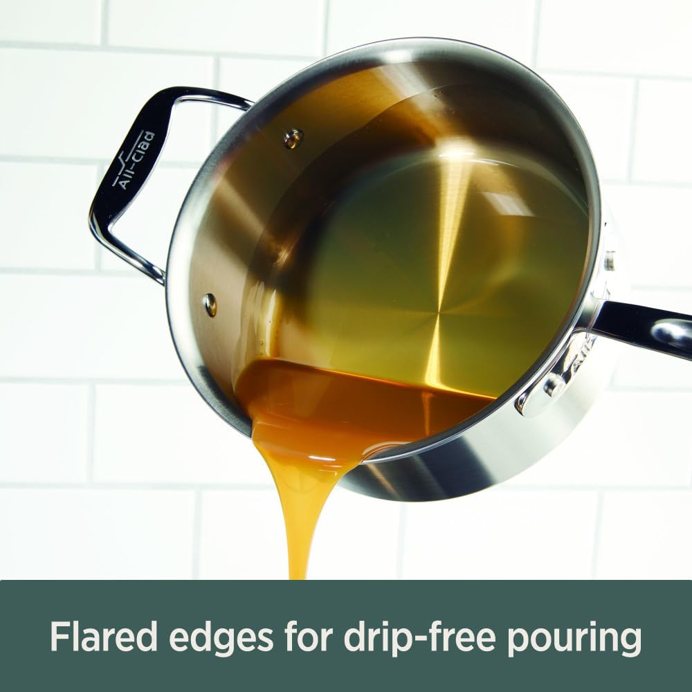 Details: When it comes to making sauce, gravy, or other liquidy foods, the saucepan is your go to. Its high, straight sides lend itself well for frequent stirring or whisking that comes with making sauces, limiting spilling. And the smaller surface area holds heat well and limits evaporation. As part of our D5 Stainless Collection, this Saucepan is made with our patented process that bonds 3 layers of stainless steel with 2 layers of aluminum. It distributes heat more evenly and slowly, eliminating hotspots, so your food doesn’t stick or burn. For an added touch of style, it has a timeless brushed finish that adds a bit of texture and refinement to your kitchen and is easier to clean. At 3 quarts in size, it’s just right for making sauces, heating liquids, cooking food in liquids and reheating. To keep your All Clad looking brand new, we recommend washing your cookware with a soap and sponge instead of the dishwasher. Like all our bonded cookware, it's handmade in the USA at our Canonsburg, PA factory with ultra durable materials that'll last a lifetime and never go out of style. Handles & handle loops are made in China.